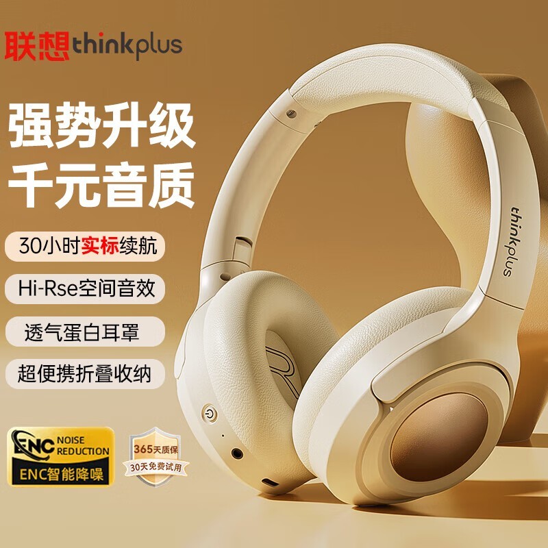联想Lenovo TH54米色头戴蓝牙耳机优惠价82.47元